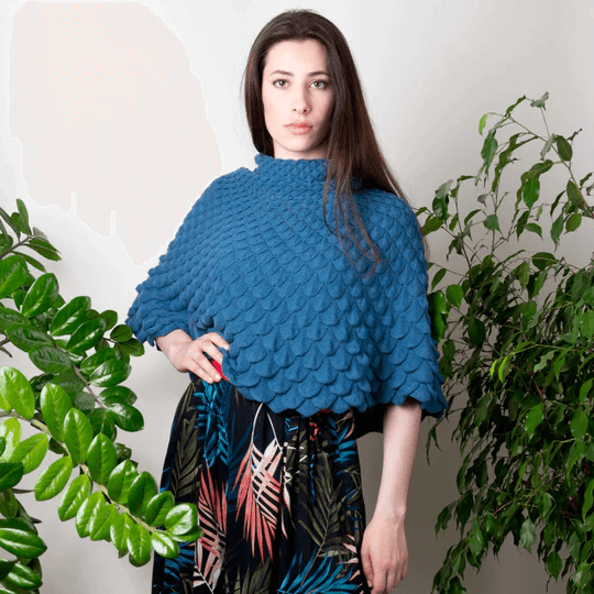 Das wandlungsfähige Cape trägt den Namen der Göttin der Jagd, des Waldes und des Mondes. Die aussergewöhnliche Strickstruktur ist charmant wie die gleichnamige abenteuerlustige Göttin. Diana schützt als Naturliebhaberin die Tier- und Pflanzenwelt, sie ist gern unterwegs und durchstreift die Wälder.
